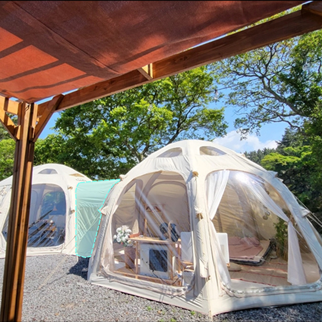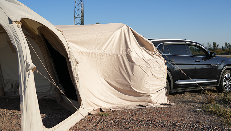 Wytrzymały materiał odporny na warunki atmosferyczne skutecznie chroni przed deszczem, wiatrem i nadmiernym słońcem. Montaż jest szybki i prosty – wystarczy przymocować łącznik do namiotu oraz pojazdu lub drugiego namiotu.