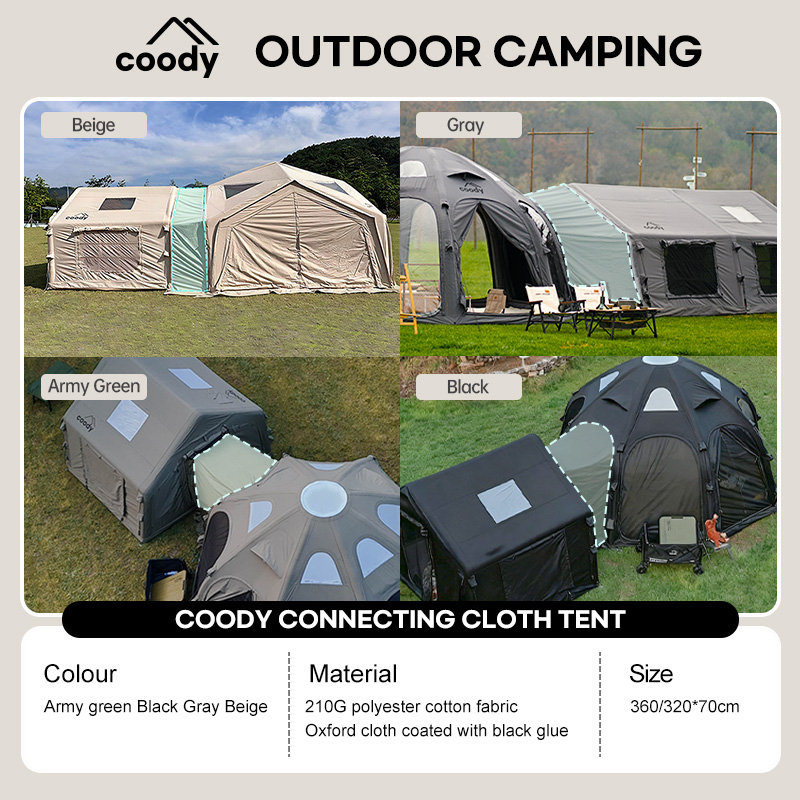 Produkt został zaprojektowany specjalnie do namiotów Coody Hub, Coody 8.0 Air Tent, Coody 17.2 Air Tent oraz Coody Dome. Connecting Cloth umożliwia stabilne i szczelne połączenie zarówno z samochodem (SUV, van, kombi), jak i z innym namiotem, tworząc większą i bardziej funkcjonalną przestrzeń kempingową.