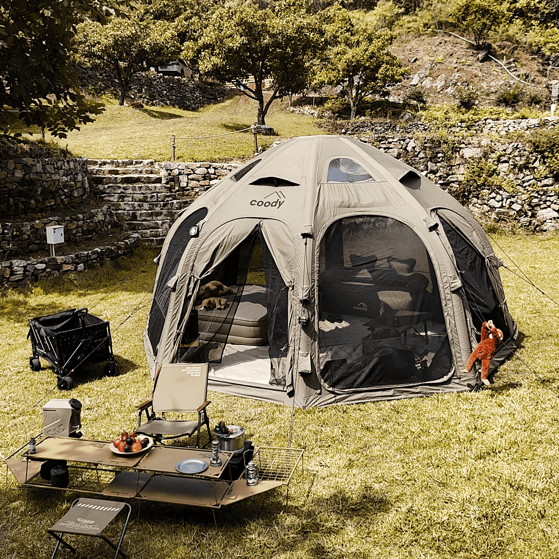 Namiot Coody 8.0 Pro to rewolucja w outdoorowym wypoczynku. Dzięki nadmuchiwanej konstrukcji łączy nowoczesną technologię z wygodą i bliskością natury, tworząc przestrzeń idealną na każdą przygodę.