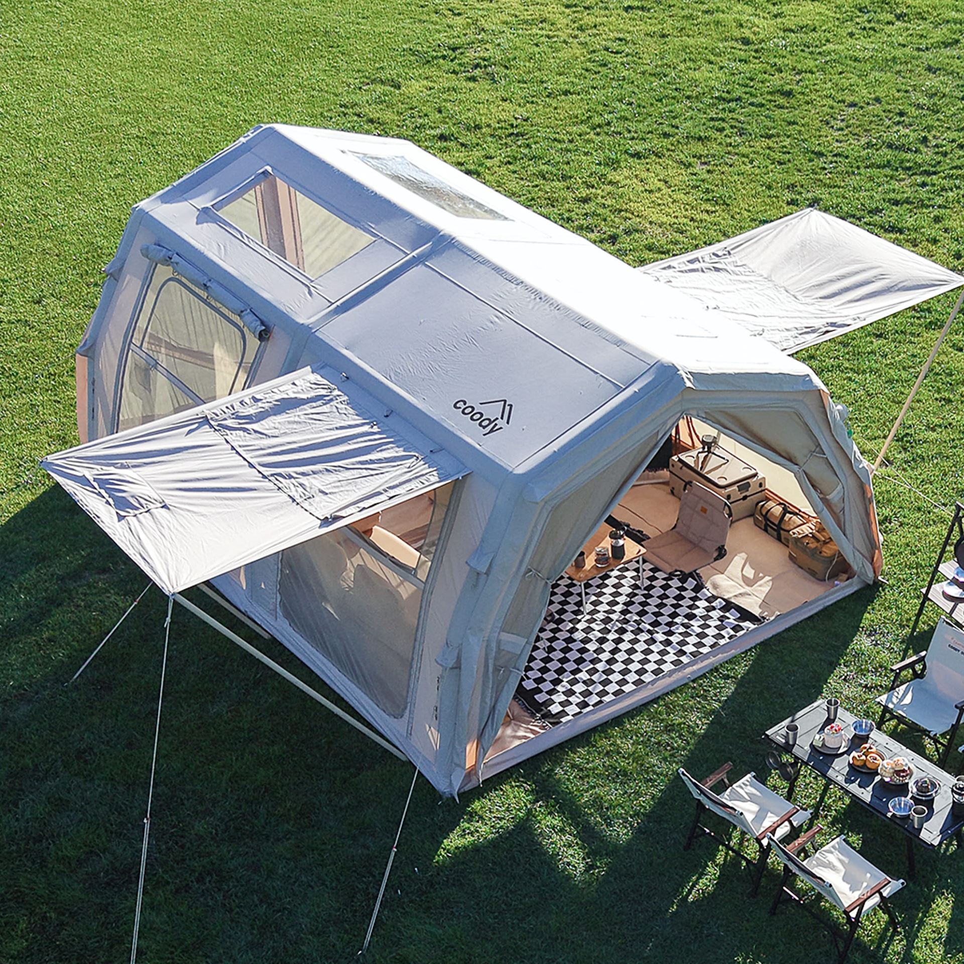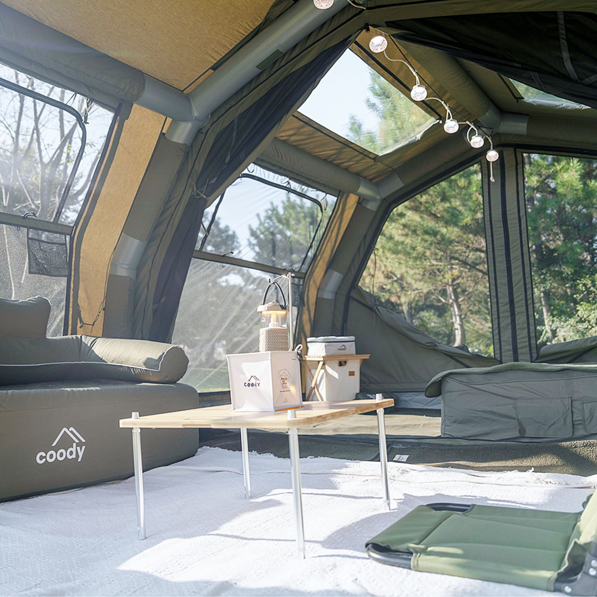 Przestronny, wytrzymały i komfortowy – Coody Familia Pro to namiot dmuchany stworzony z myślą o rodzinnych wyprawach, dłuższych wyjazdach i wymagających warunkach outdoorowych. Dzięki inteligentnej konstrukcji nadmuchiwanej zapewnia szybki montaż, stabilność oraz dużą powierzchnię użytkową, która sprawdzi się zarówno podczas rodzinnych wakacji, jak i weekendowych przygód z przyjaciółmi.