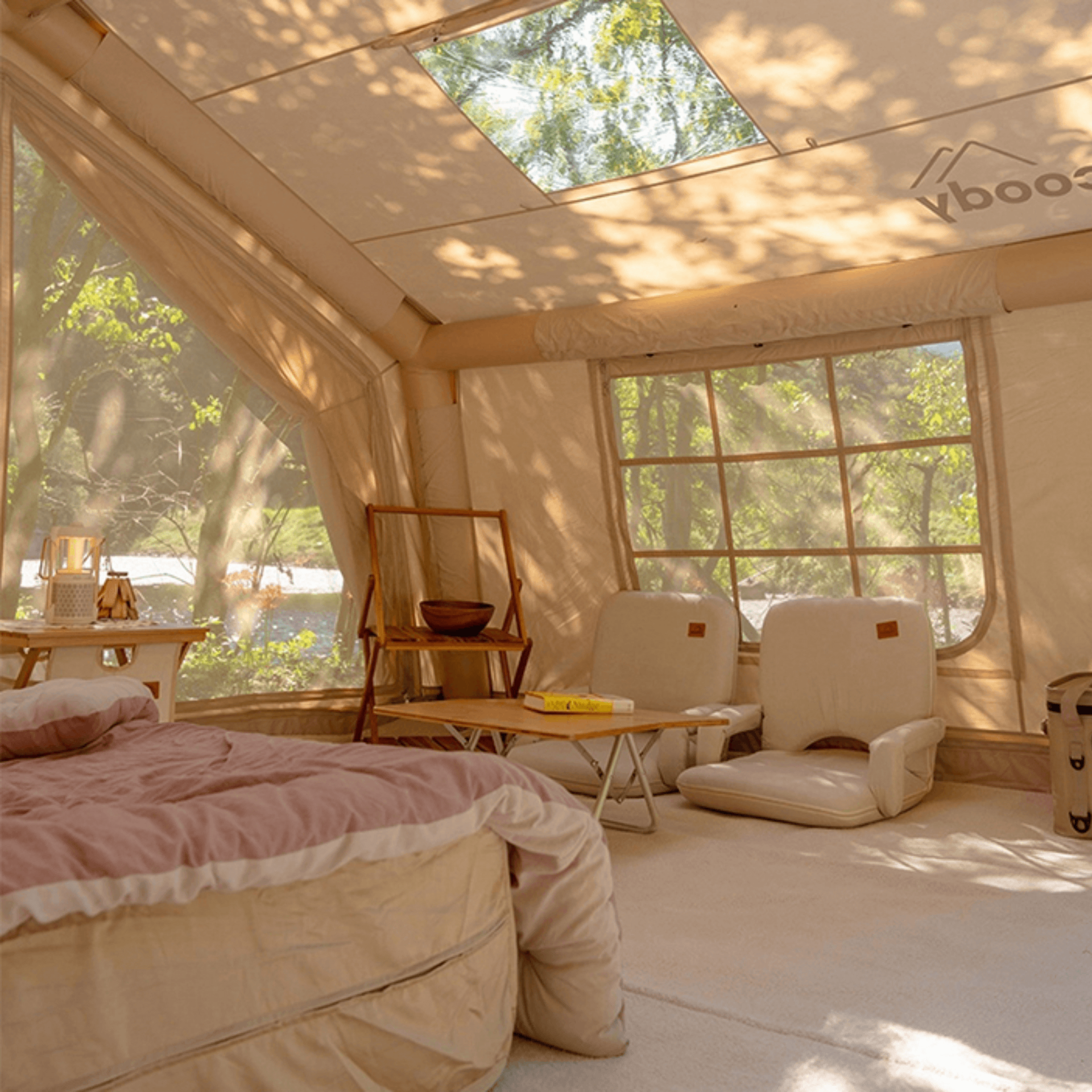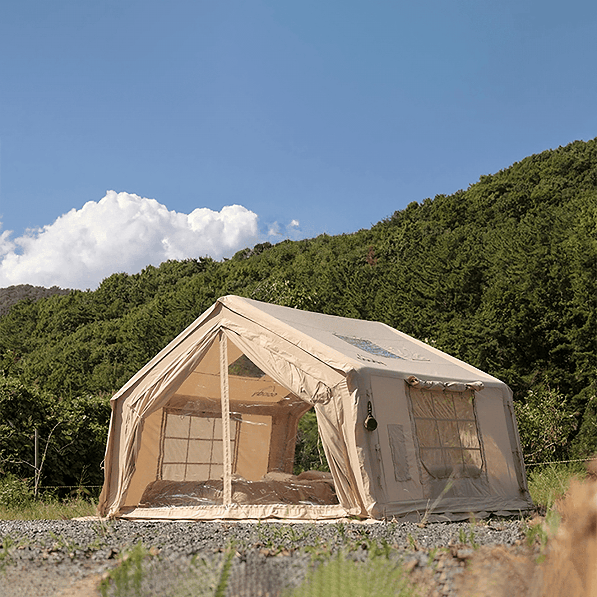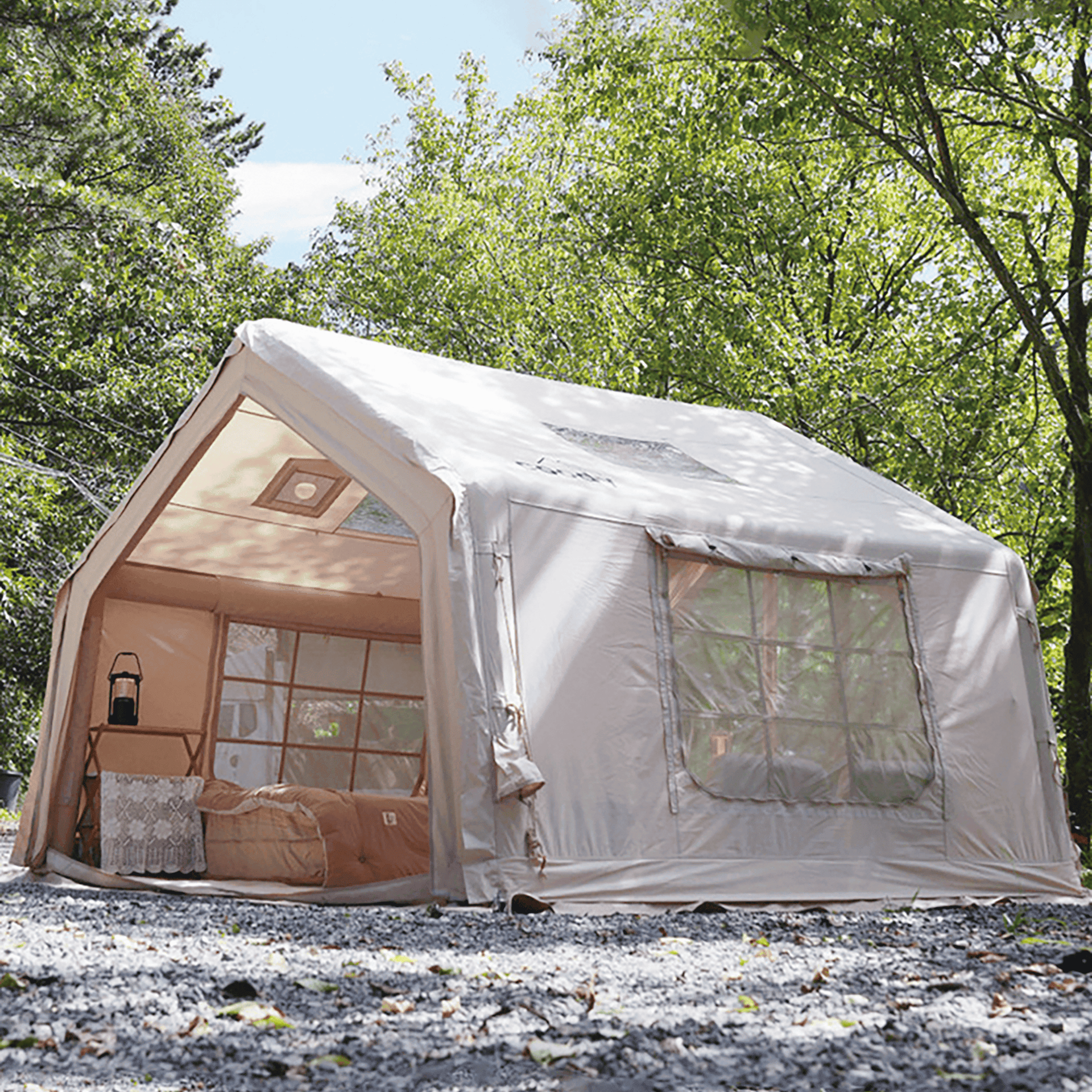 - Trwałość i stabilność: Wykonana z wytrzymałego, odpornego na przebicie materiału rama wytrzymuje silne wiatry i umiarkowane obciążenia mechaniczne. Nadmuchiwana konstrukcja zapewnia amortyzację niedostępną w tradycyjnych namiotach masztowych.